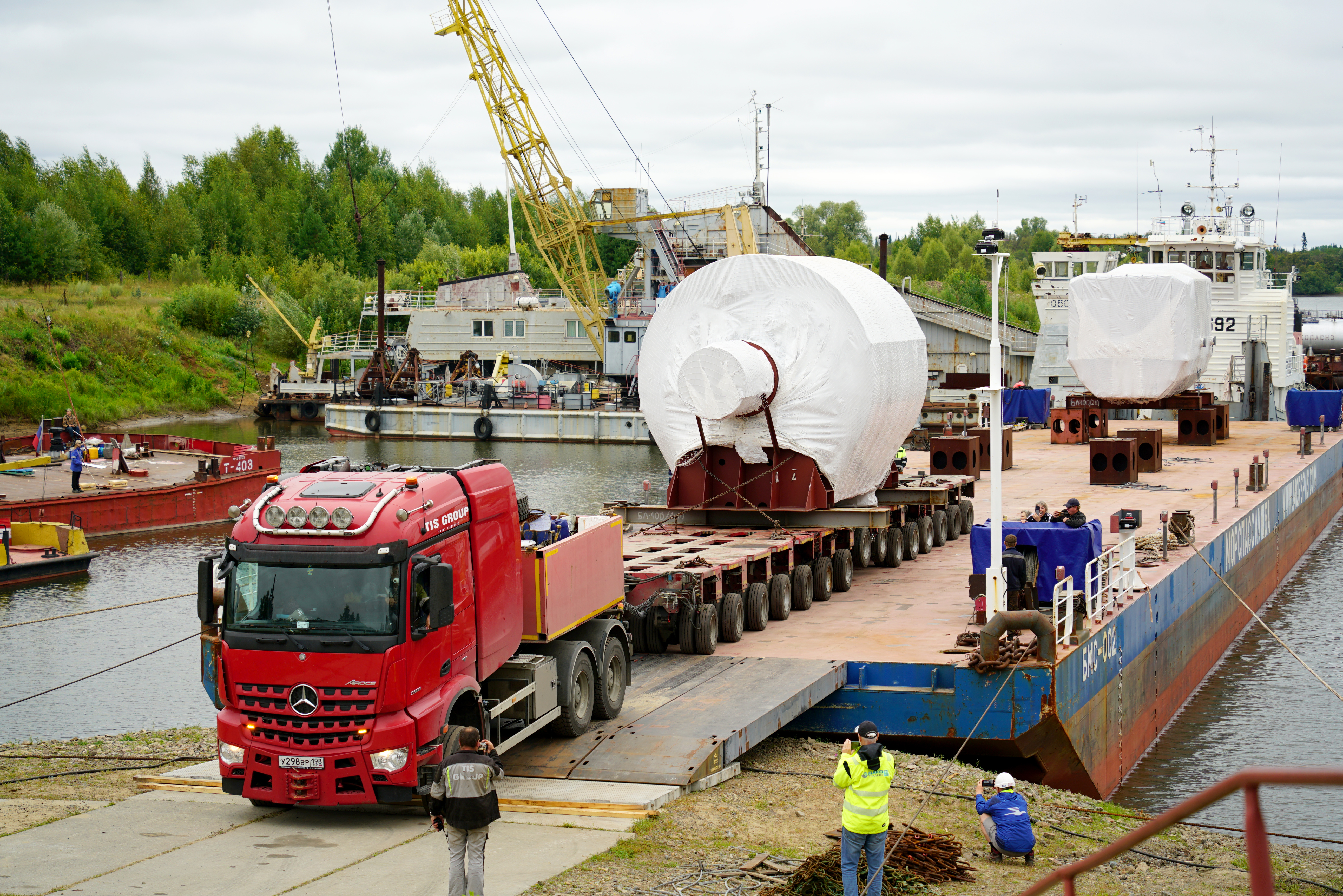 Статор весит 245 тонн и имеет габариты 8 метров в длину, около 4,5 метра в высоту и 4,8 метра в ширину. Ротор турбины, также доставленный водным путем, весит 98 тонн. Также железнодорожным транспортом доставлен ротор генератора.
